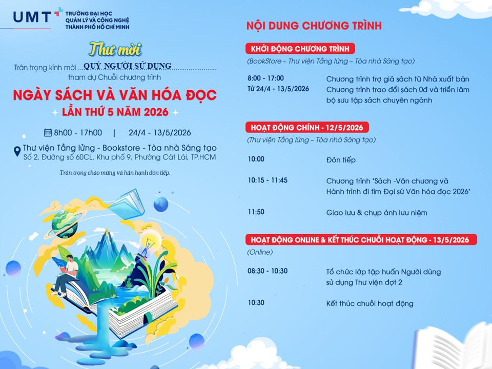 👉  UMTers ơi, các bạn đã sẵn sàng cho chuỗi sự kiện Ngày Sách và Văn hóa đọc Việt Nam lần thứ 5 chưa? Cùng điểm qua những hoạt động hấp dẫn tại Thư viện nhé!