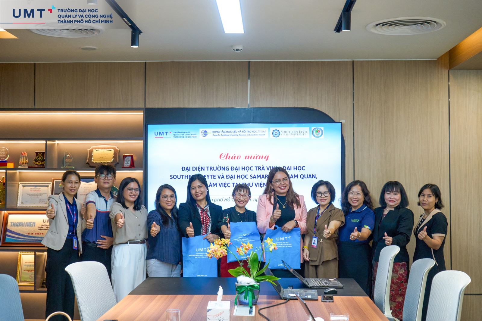 Vừa qua, Trường Đại học Quản lý và Công nghệ TP.HCM (UMT) hân hạnh đón tiếp đoàn đại biểu đến từ ba trường đại học: Trường Đại học Công lập Southern Leyte (Philippines), Trường Đại học Công lập Samar (Philippines), Trường Đại học Trà Vinh (Việt Nam). Chuyến thăm và làm việc mở ra cơ hội hợp tác trong lĩnh vực học thuật, đặc biệt là vận hành thư viện và trung tâm học liệu – yếu tố cốt lõi trong hệ sinh thái đào tạo đại học hiện đại.
