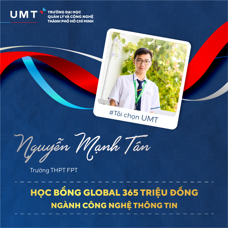 Với sự quyết tâm, niềm đam mê dành cho IT và ước mơ được đóng góp cho cộng đồng xã hội, mang lại nhiều giá trị hơn từ các sản phẩm công nghệ ứng dụng cho cuộc sống, Mạnh Tân đã xuất sắc chinh phục học bổng Global trị giá 365 triệu đồng toàn khóa học tại UMT. Hy vọng học bổng sẽ là nguồn động viên to lớn nâng bước và chắp cánh để bạn tiếp tục thực hiện ước mơ của mình trong những năm tháng đại học sắp tới.