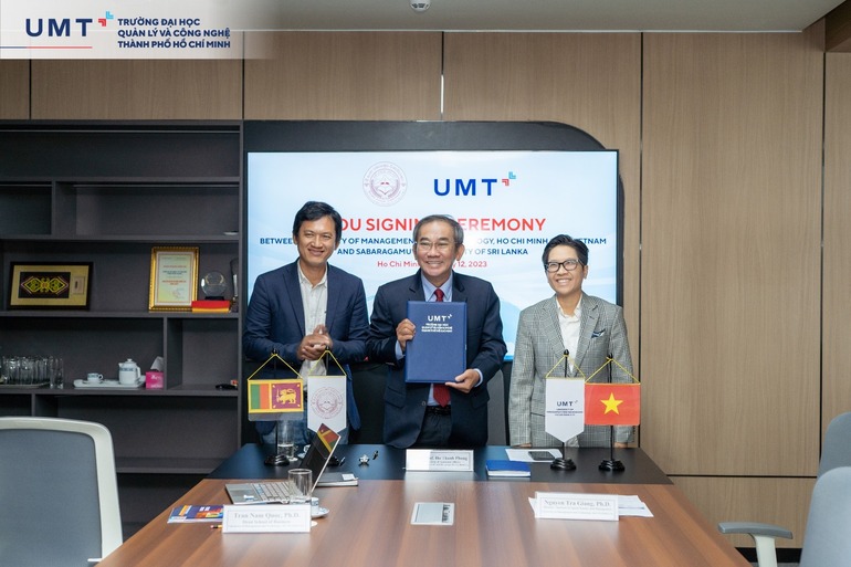 Sáng ngày 12/5/2023, Trường Đại học Quản lý và Công nghệ TP.HCM (UMT) đã chính thức ký kết hợp tác cùng Trường Đại học Sabaragamuwa (Sri Lanka) với sự tham gia của đại diện hai đơn vị. Buổi lễ diễn ra với hình thức ký kết trực tuyến trong khuôn khổ hợp tác mở rộng và ngày càng phát triển hơn môi trường đào tạo của UMT, mang đến chất lượng giáo dục tốt nhất cho sinh viên.