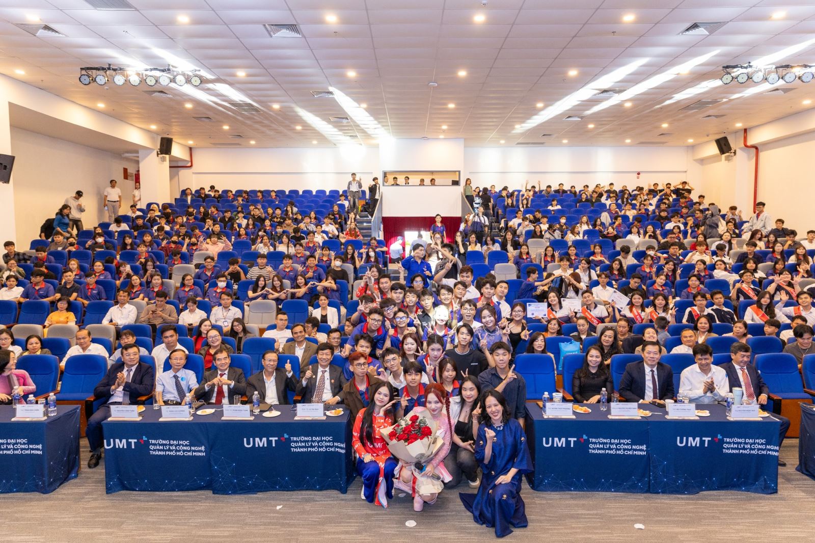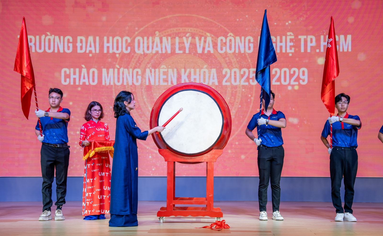 Ngay từ những giờ đầu, hội trường đã tràn ngập sắc màu UMT với sự hiện diện của Ban Giám hiệu, Quý Thầy Cô, Phụ huynh và đông đảo các bạn sinh viên. Nghi thức khai mạc được tổ chức trang nghiêm và giàu cảm xúc, đánh dấu bước khởi đầu ấn tượng trên hành trình Đại học của sinh viên Khóa 4. Đồng thời, đây cũng là lời chào mừng chính thức của Nhà trường gửi đến tân sinh viên, chào mừng các bạn bước vào cộng đồng UMT tài năng.